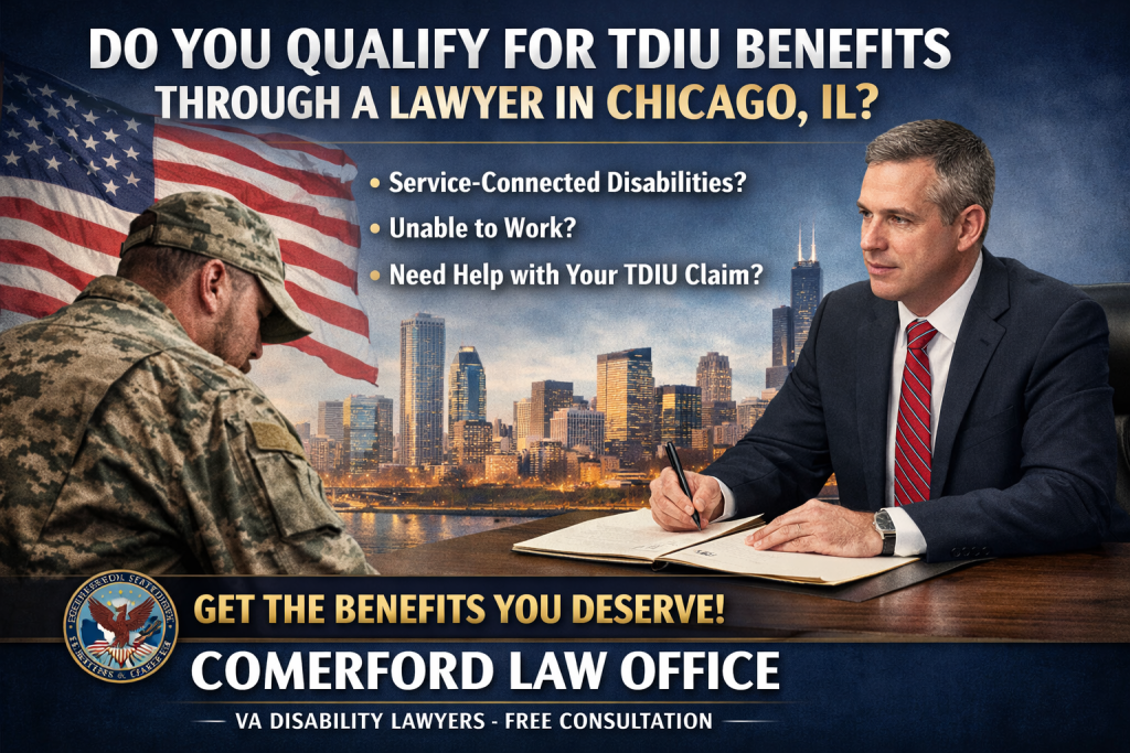Many veterans in Illinois face challenges with their service-connected disabilities that make it impossible to hold down a steady job, and this can happen even when a veteran’s official VA disability rating is below 100%. Total Disability based on Individual Unemployability (TDIU) allows eligible veterans to receive compensation at the 100% disability rate, but it can be difficult to jump through all the hoops required to qualify. An experienced TDIU lawyer in Chicago, IL can help if you’re struggling and greatly improve your chances of qualifying.